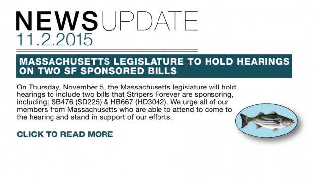 On Thursday, November 5, the Massachusetts legislature will hold hearings to include two bills that Stripers Forever are sponsoring, including: SB476 (SD225) – An Act relative to the conservation of striped bass, which would restrict participation in the commercial striped bass fishery to those individuals with an historically significant (1,000 lbs average for previous five […]